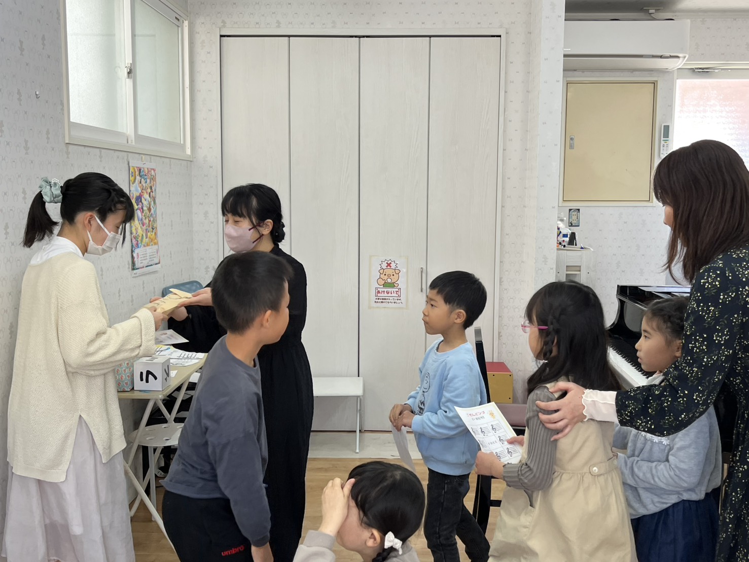 今年は、音ビンゴ大会。ト音記号とヘ音記号、それぞれのレベルに合わせて5線譜に書きました。