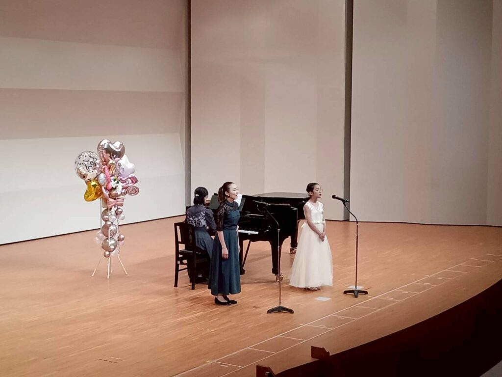 さっそく、発表会後に「私も歌を習いたい。」というお声をいただき、現在ピアノとの同時受講が4名、歌のみの生徒様が1名、併せて声楽科は、5名のお子様、+5名の大人の会員様に通っていただいています。